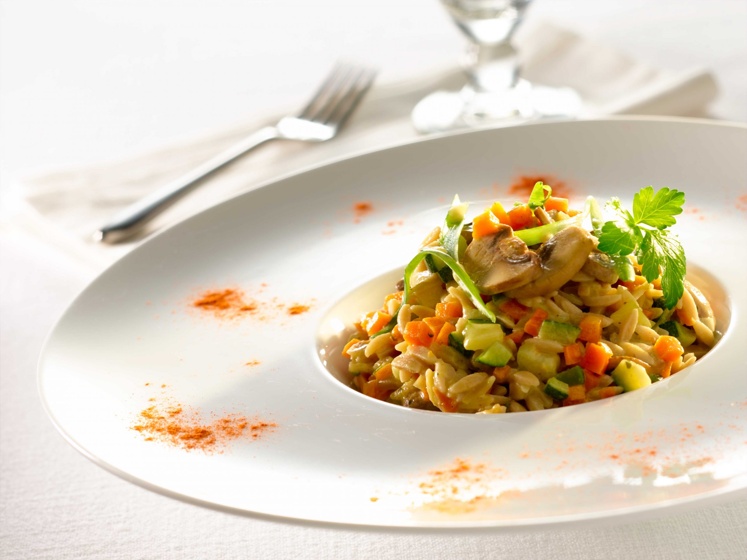 Wok de gesneden groenten in een eetlepel olijfolie. Voeg eerst de wortelen toe, laat 5 min. stoven, voeg na 2 min. de courgette toe en laat terug 3 minuten stoven.