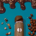 Ingrediënten: vulling van Giandujacrème (66,5%) (zoetstof: maltitol*, plantaardige vetten en oliën [sheaboter, zonnebloemolie, cacaoboter, saffloerolie], isolaat van WEI-eiwit, magere cacaopoeder; HAZELNOTEN (5%); isolaat van SOJA-eiwit; emulgator: SOJAlecithine, aroma’s); MELKeiwitten; HAZELNOOTpasta (4,3%); cacaoboter; cacaomassa; rijstmeel; gehydrolyseerd collageen; aardappelzetmeel; fructo-oligosacchariden; zoetstoffen: erythritol en steviolglycosiden uit Stevia; volle MELKpoeder; high oleic zonnebloemolie; maïszetmeel; emulgator: zonnebloemlecithine; quinoameel; vanilline; rijsmiddelen: natriumbicarbonaat en ammoniumbicarbonaat.