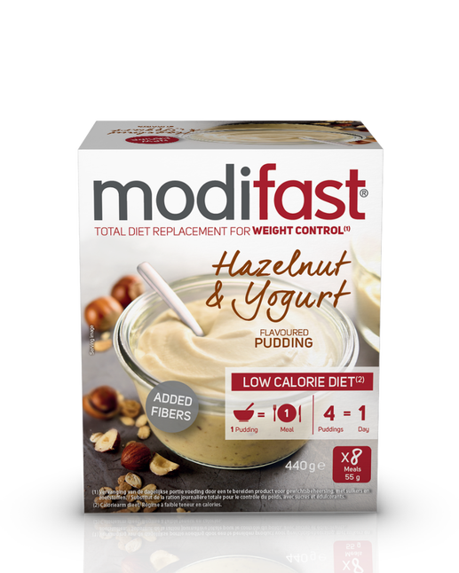 Intensive Pudding Yogurt Hazelnut: Deze smaakvolle hazelnoot en yoghurt pudding is rijk aan eiwitten, vezels, vitaminen en mineralen en is vetarm. Bevat slechts 210 kcal per maaltijd.
