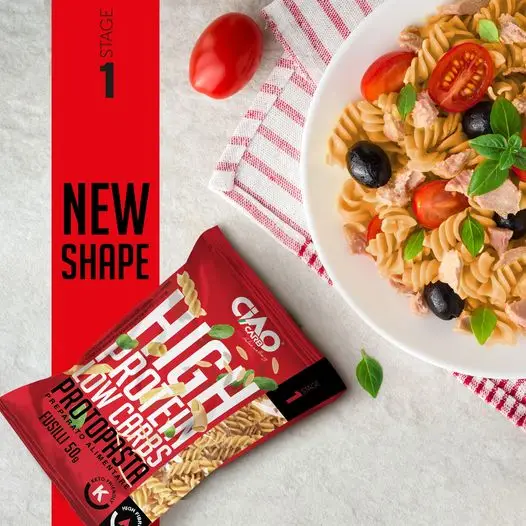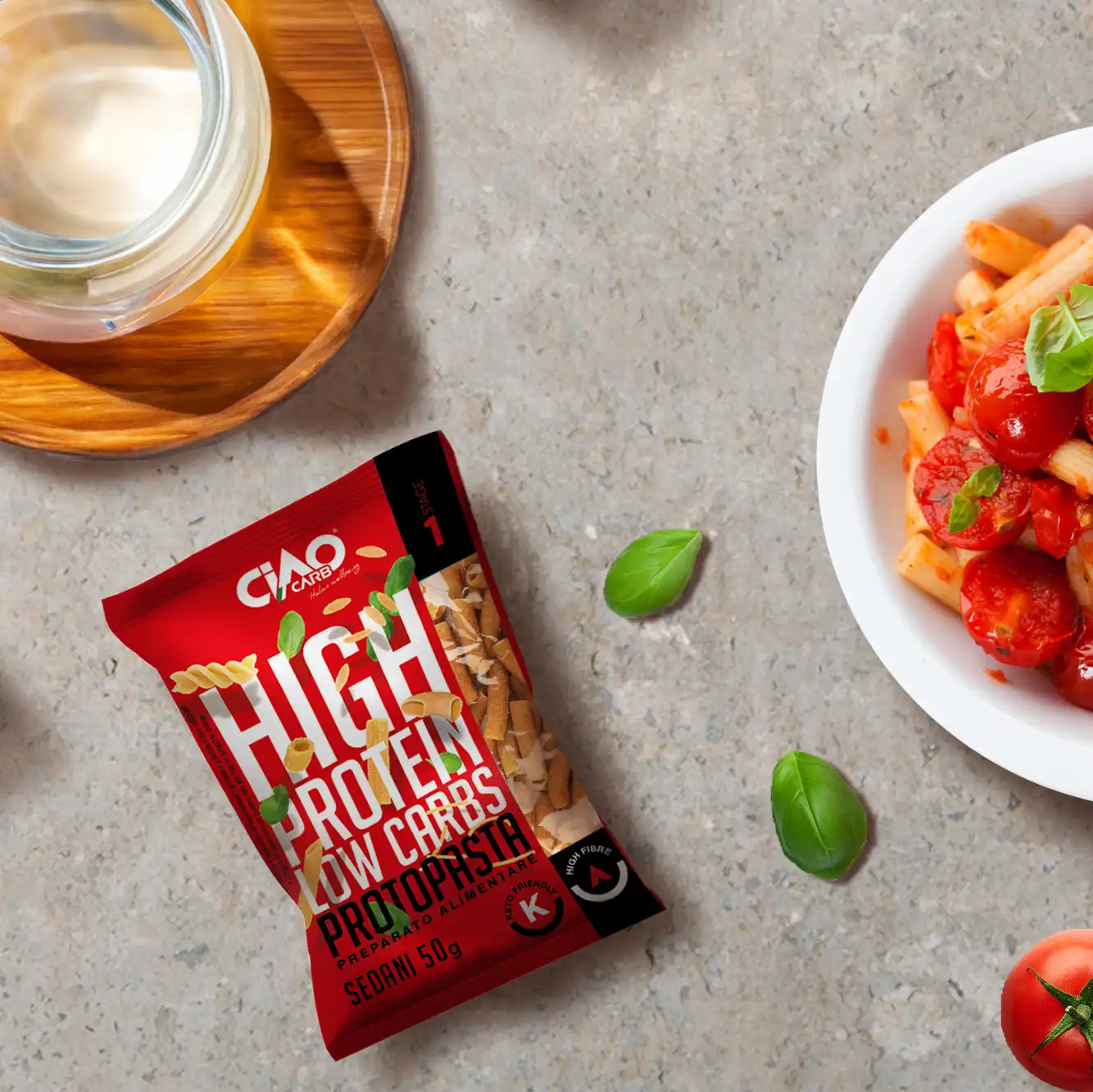 CIAOCARB is een van de belangrijkste fabrikanten in het segment van eiwitrijke en caloriearme specialiteiten. CIAOCARB gamma bestaat uit laag-calorisch voedsel, met aanwezigheid van plantaardige vezels en met een hoog eiwitgehalte. Deze pasta bevat zeer weinig koolhydraten, maar is zeer rijk aan eiwitten. 1 portie van 50 g, geeft 30 g (!) eiwitten.